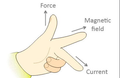 - If the forefinger points in the direction of the magnetic field, and the middle finger points in the direction of the current, the thumb indicates the direction of the force.